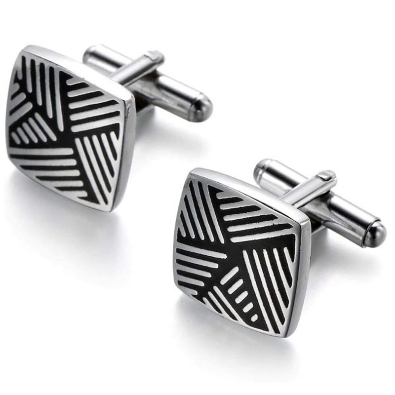 Mancornas en acero inoxidable con líneas entrecruzadas