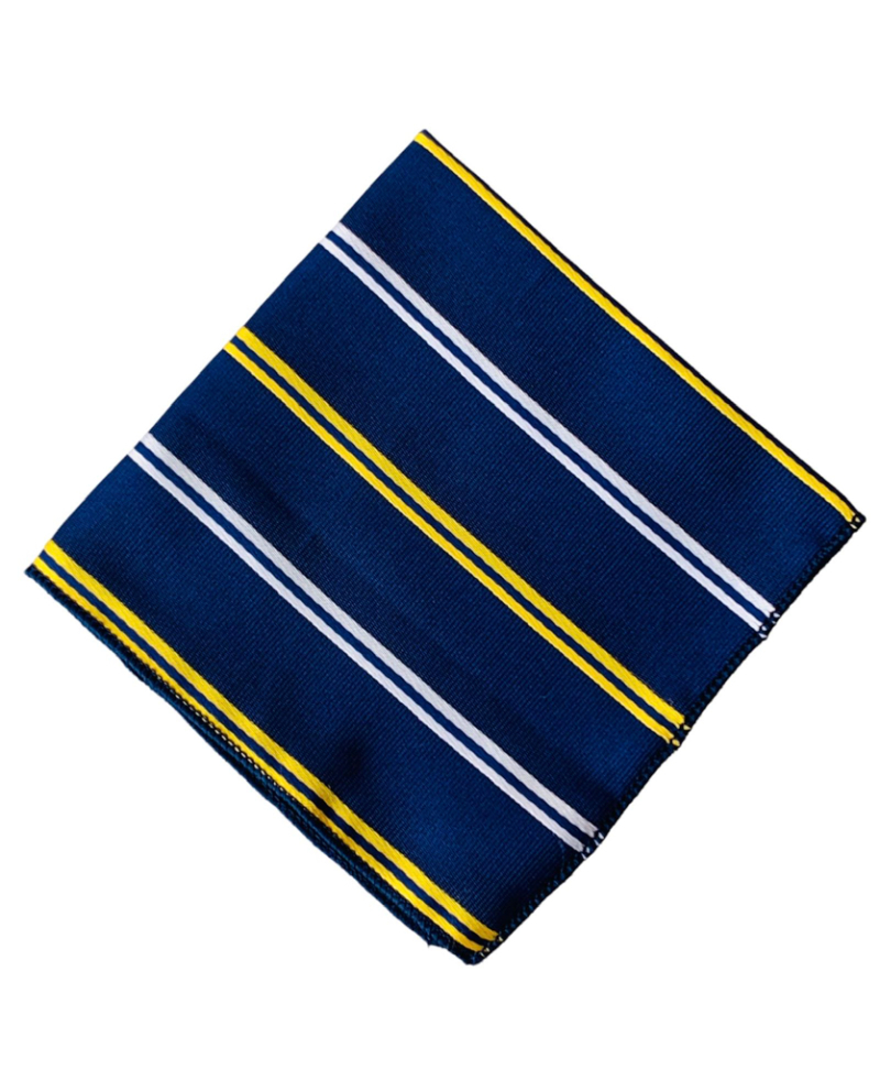 Pocket Square azul oscuro con líneas blancas y amarillas